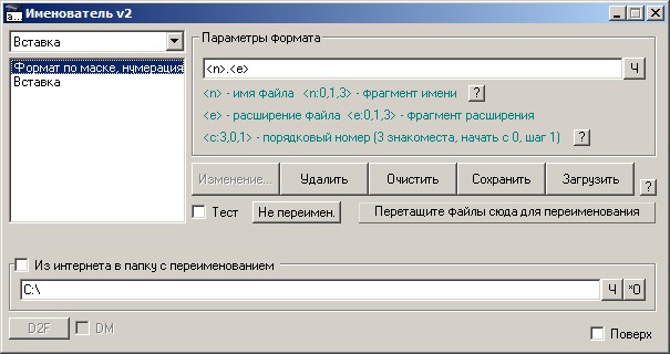 Как в Windows переименовать файлы массово? Как переименовать все файлы в папке пакетно? Именно для переименования названия файлов в Windows создана программа Именователь. Именователь позволяет задать шаблоны для переименования файлов как то: добавление, удаление символов, форматирование строки по маске, а также при массовом переименовании можно добавить счётчик в названия файлов. Программа для переименования файлов по шаблону. Позволяет вставить счётчики в имя, а также изменить старое имя (удалить/заменить/вставить символы). Шаблон переименования можно сохранить в файле. Кроме того, программа может скачать файл из интернете и сразу именовать его по шаблону (это дополнительная, нужная мне функция, хоть и не совсем вписывающаяся в смысл программы). Версия 2, выход: 09.09.2020 (108 КБ) |